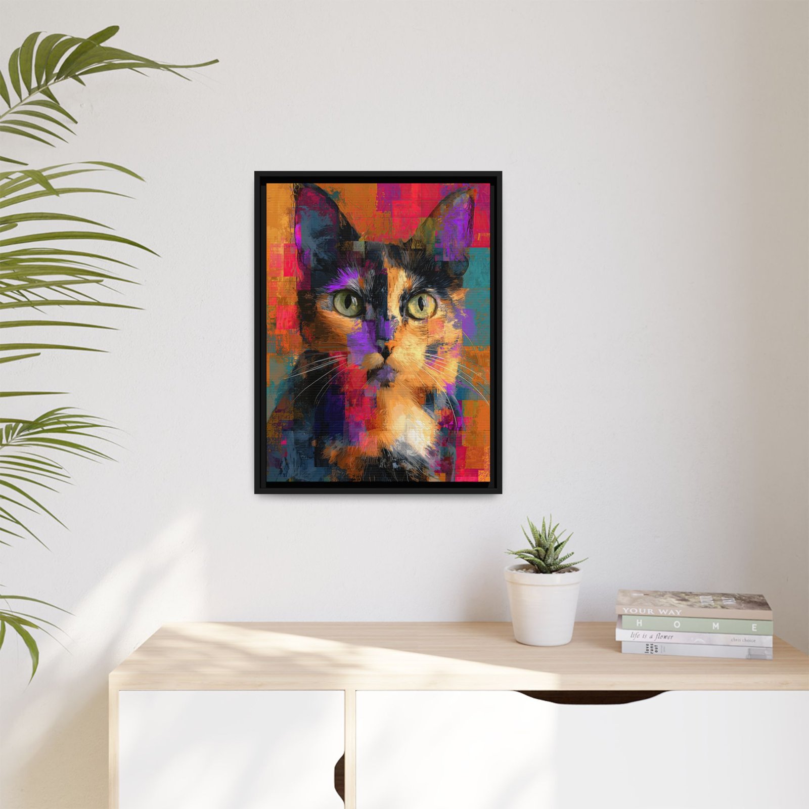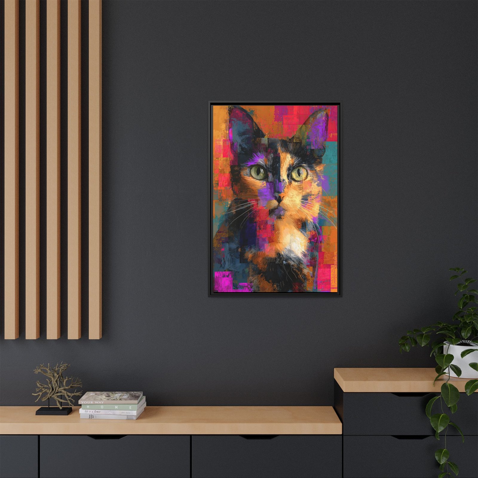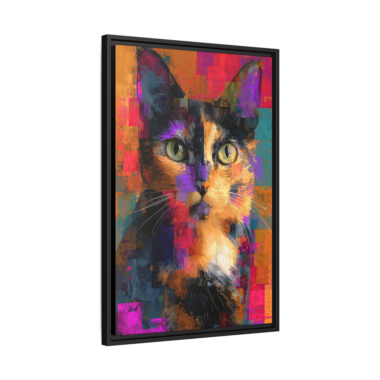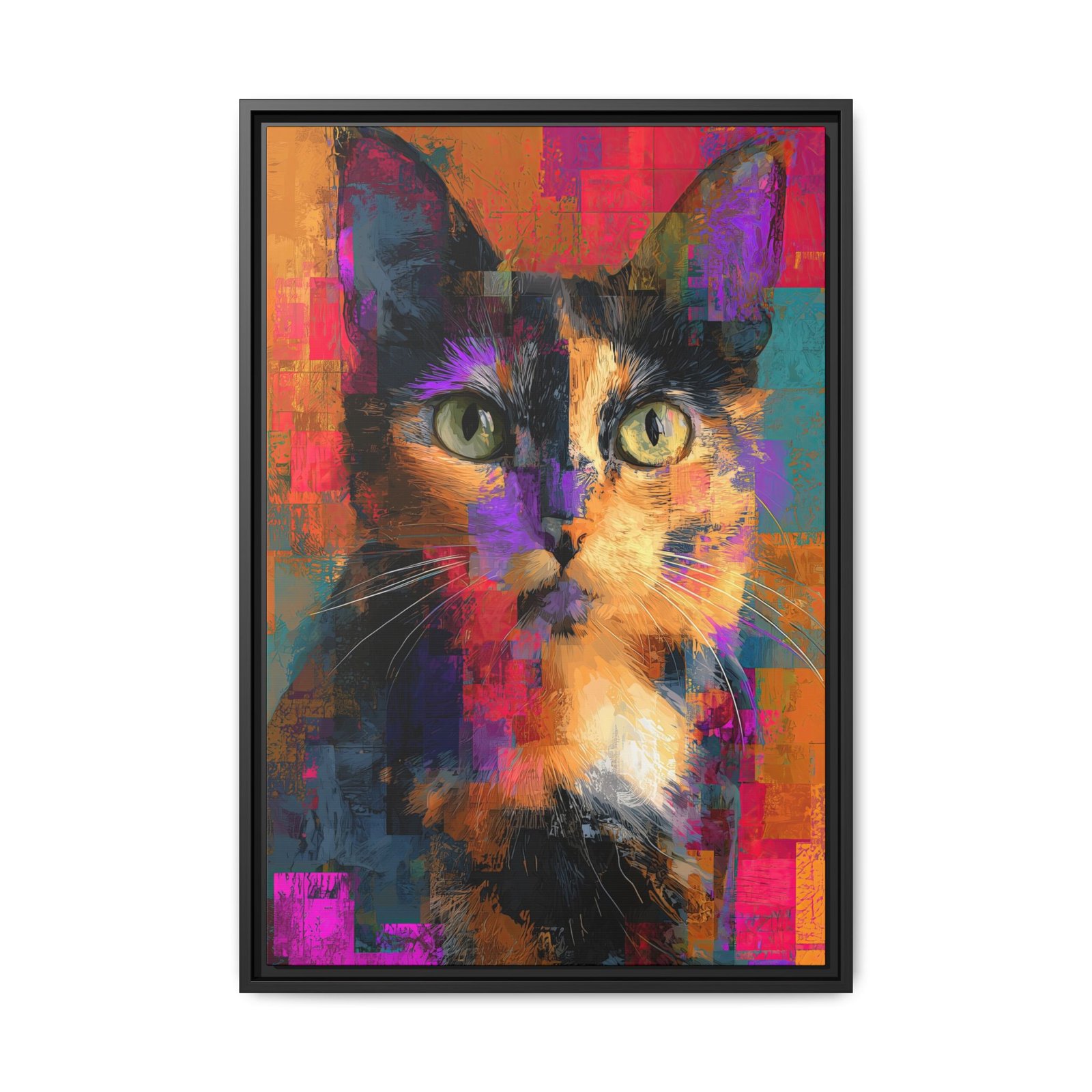Abstract Tortoiseshell Cat Wall Art – Colorful Modern Pet Portrait