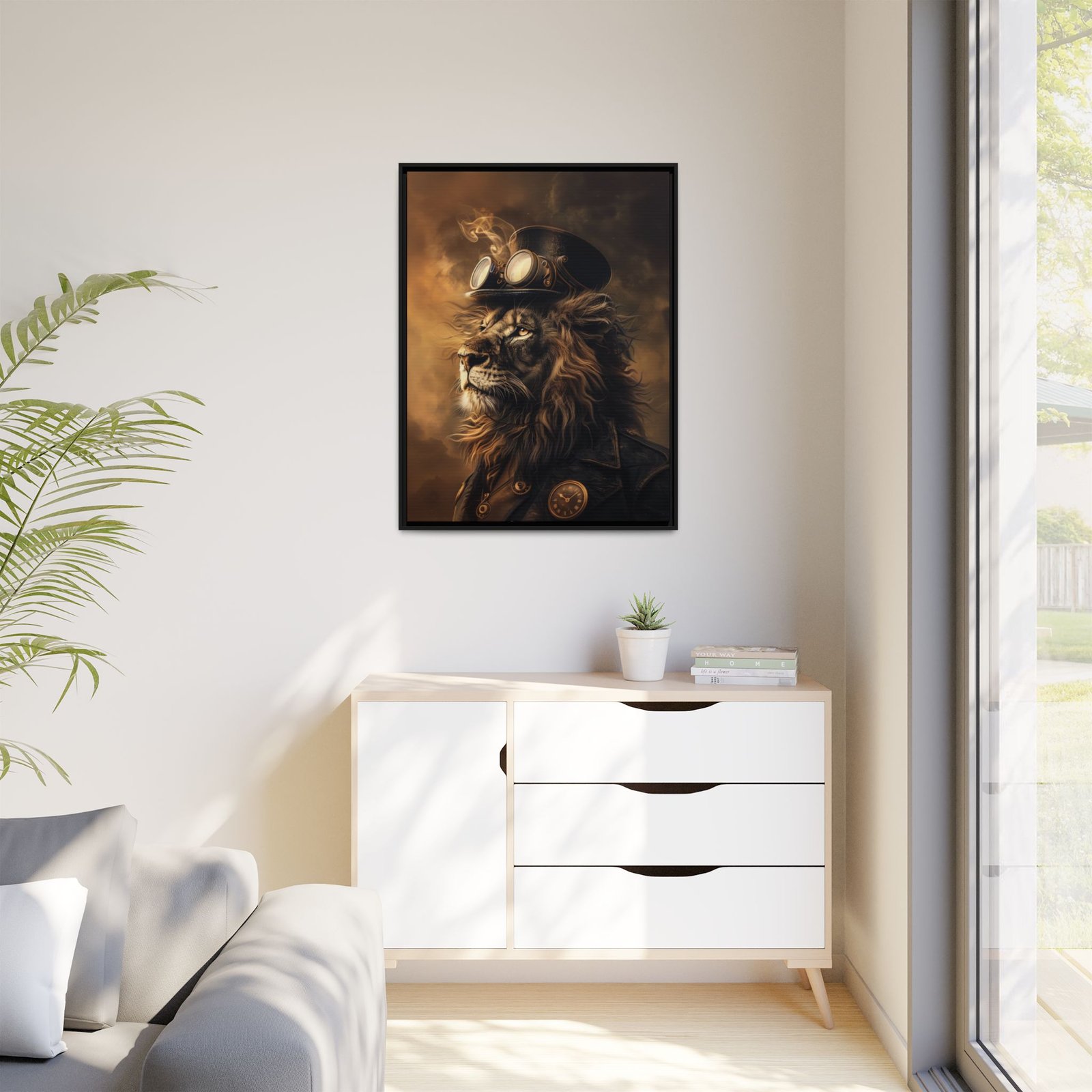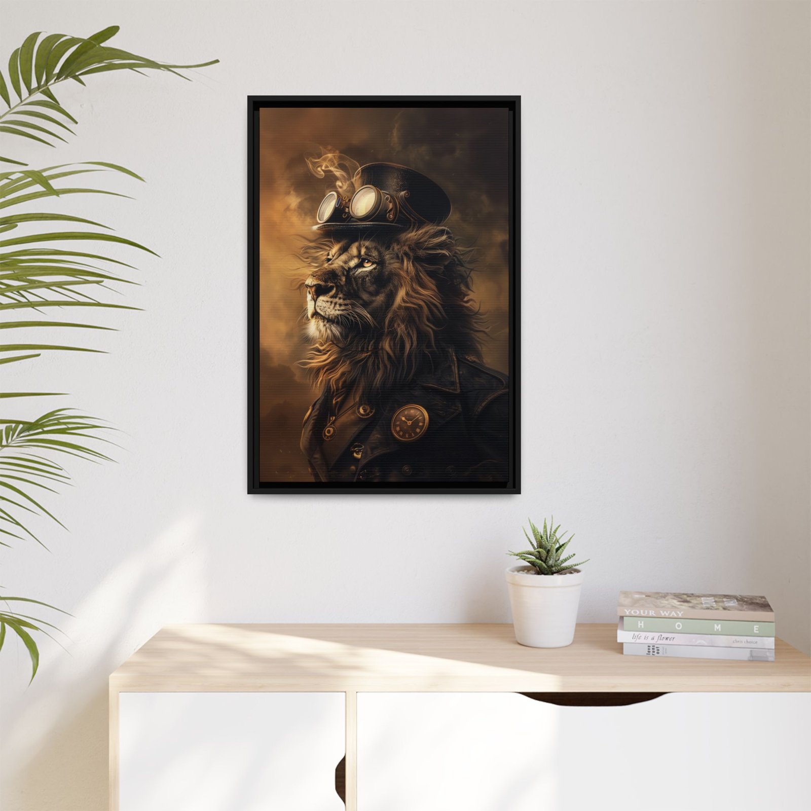 Add a bold, distinctive touch to your space with this steampunk lion wall art. Featuring a regal lion paired with vintage mechanical elements, this design blends strength and industrial style into one striking composition.